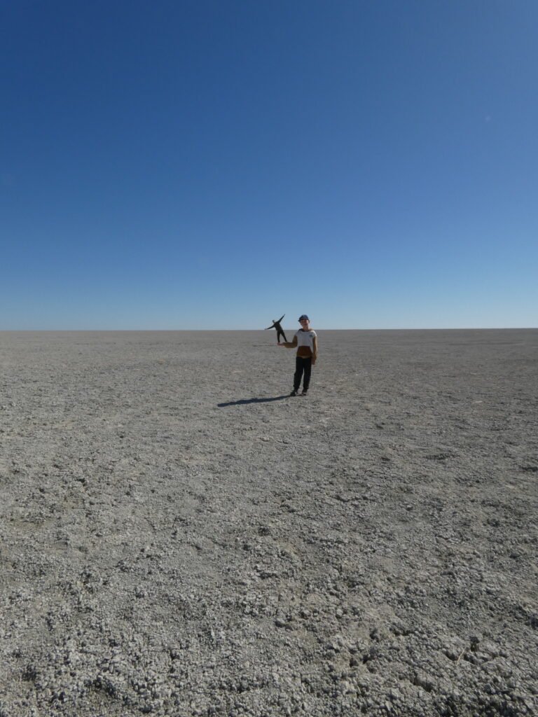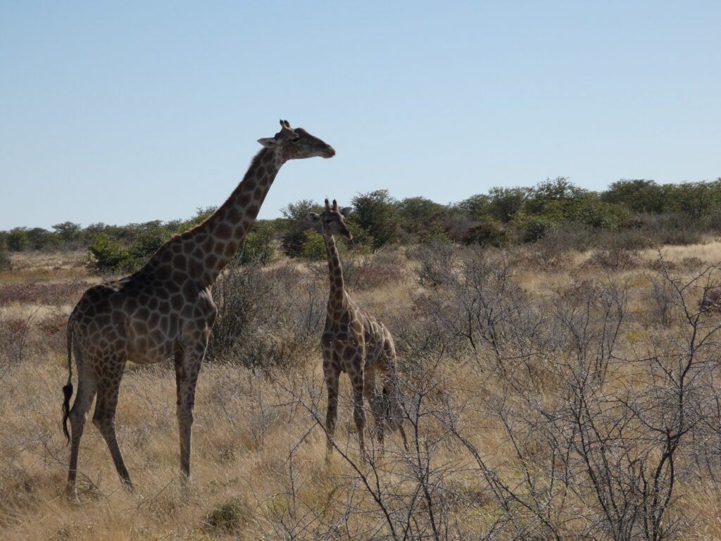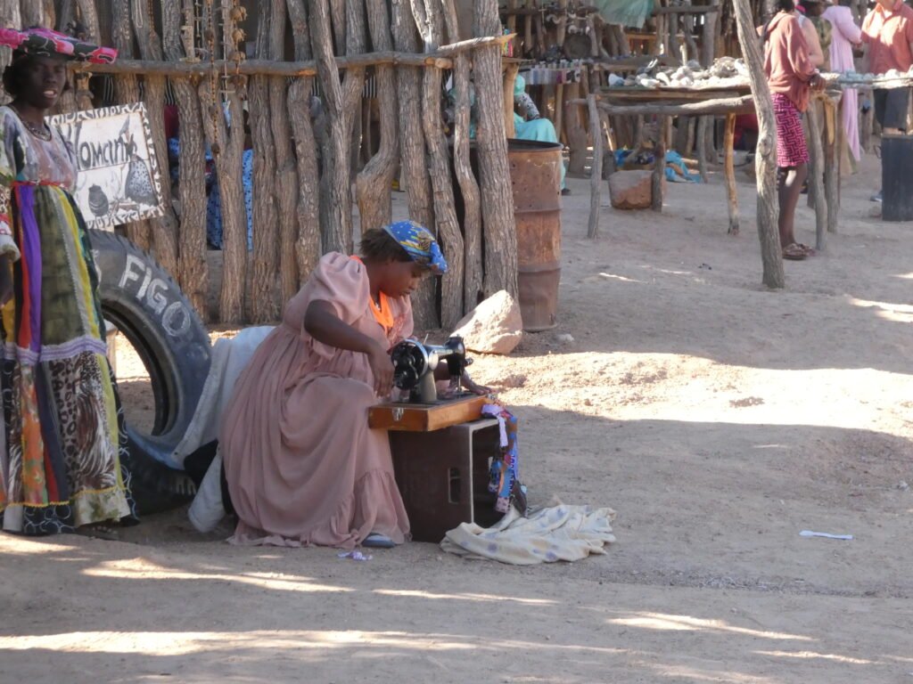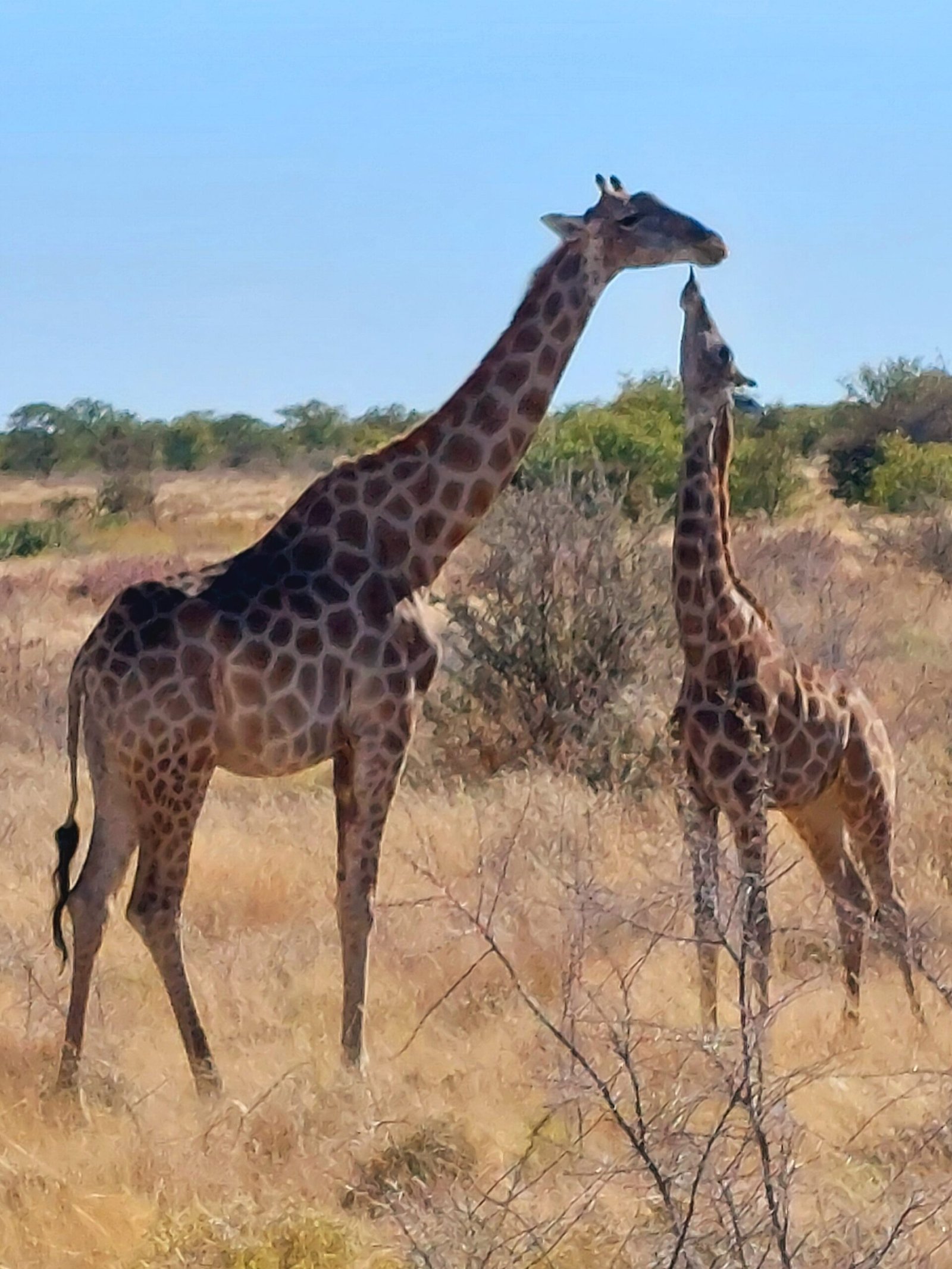 The next day, we continued our journey towards Etosha National Park. So, we had another day of driving ahead of us. At the beginning of the trip, we stopped at a place where Herero and Himba women were selling their handicrafts. We didn’t buy any handicrafts, even though they were beautiful, because the wooden decorative items in particular would surely be broken before we got back to Finland. Risto, on the other hand, spent 80 NAD on gemstones, which the women were also selling in their stalls. Ronja had managed to make another octopus, and she decided to give it to a little boy belonging to one of the Herero women. In return, Ronja got to hold the little boy and she was given a beautiful bracelet as a gift.