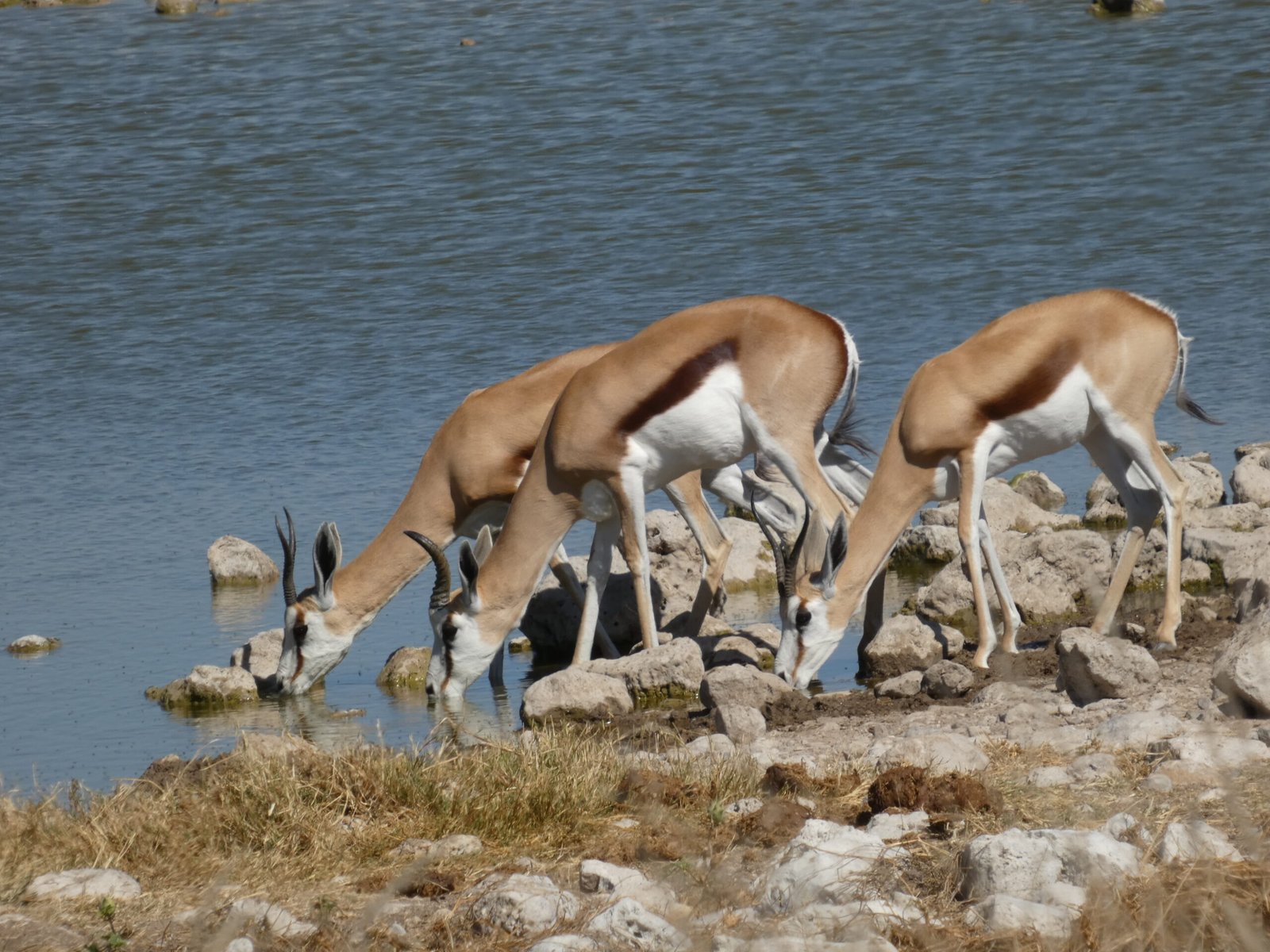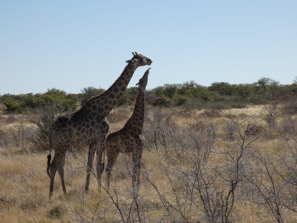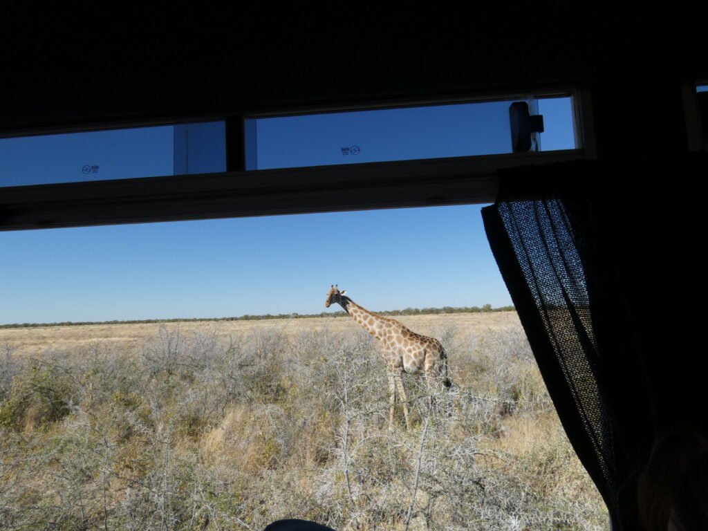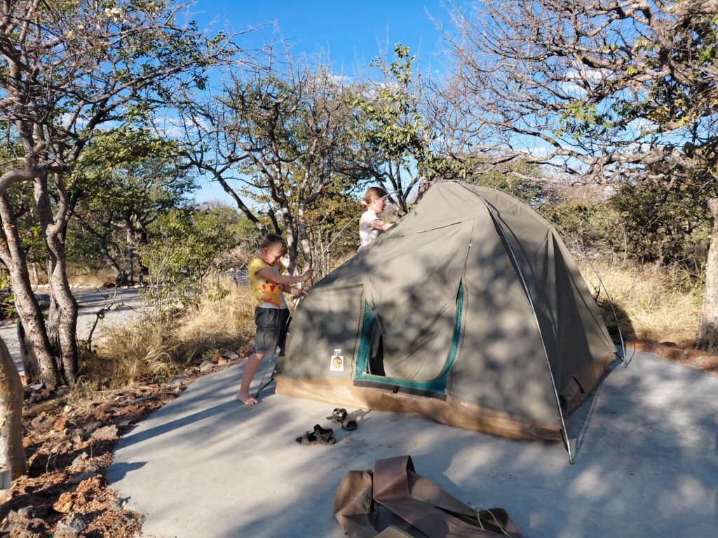 We spent the night at a campsite called Taleni, right next to Etosha National Park. As we drove in, we saw several kudu antelopes roaming around the area. Ronja was not at all thrilled about this, as she was naturally concerned about what animal she might bump into if she needed to leave the tent during the night. She suggested that we get rooms to solve the toilet problem, but her annoying parents said that it was much more fun to sleep in a tent and listen to the animals at night. Ronja was not reassured by the fact that the rooms were quite luxurious and spacious.