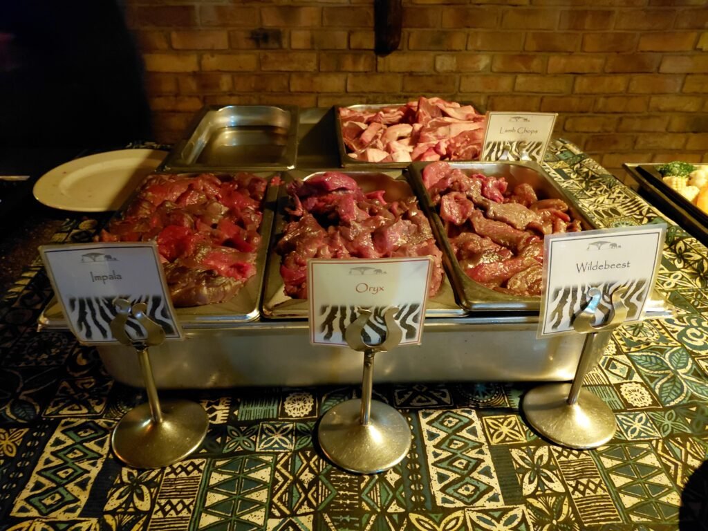 When we returned, we had dinner again at the resort restaurant. This time, the meat options were impala, oryx, and wildebeest. Once again, we had to try all the options available, and once again, we found that they all tasted pretty much the same. They were good, though.