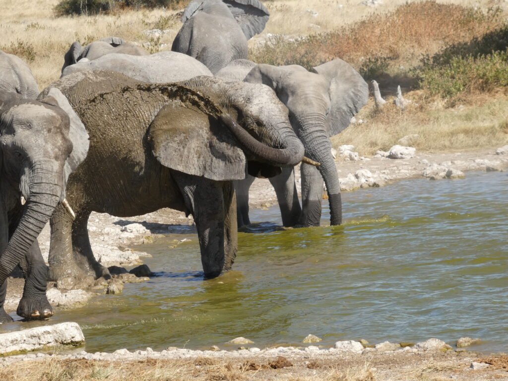 We got up early in the morning so that we could be at the gate of the nature park when it opened. We spent the whole day in the park marveling at the animals. We were incredibly lucky: we saw a total of about 60 elephants at two different watering holes, a dozen giraffes, hundreds of zebras and various antelopes, a rhinoceros (albeit from a distance) and seven lions. Marko took lots of photos of the animals with his camera, and Jaana took care of the video. We won’t post all 269 photos on this blog, but here are some of the best ones.