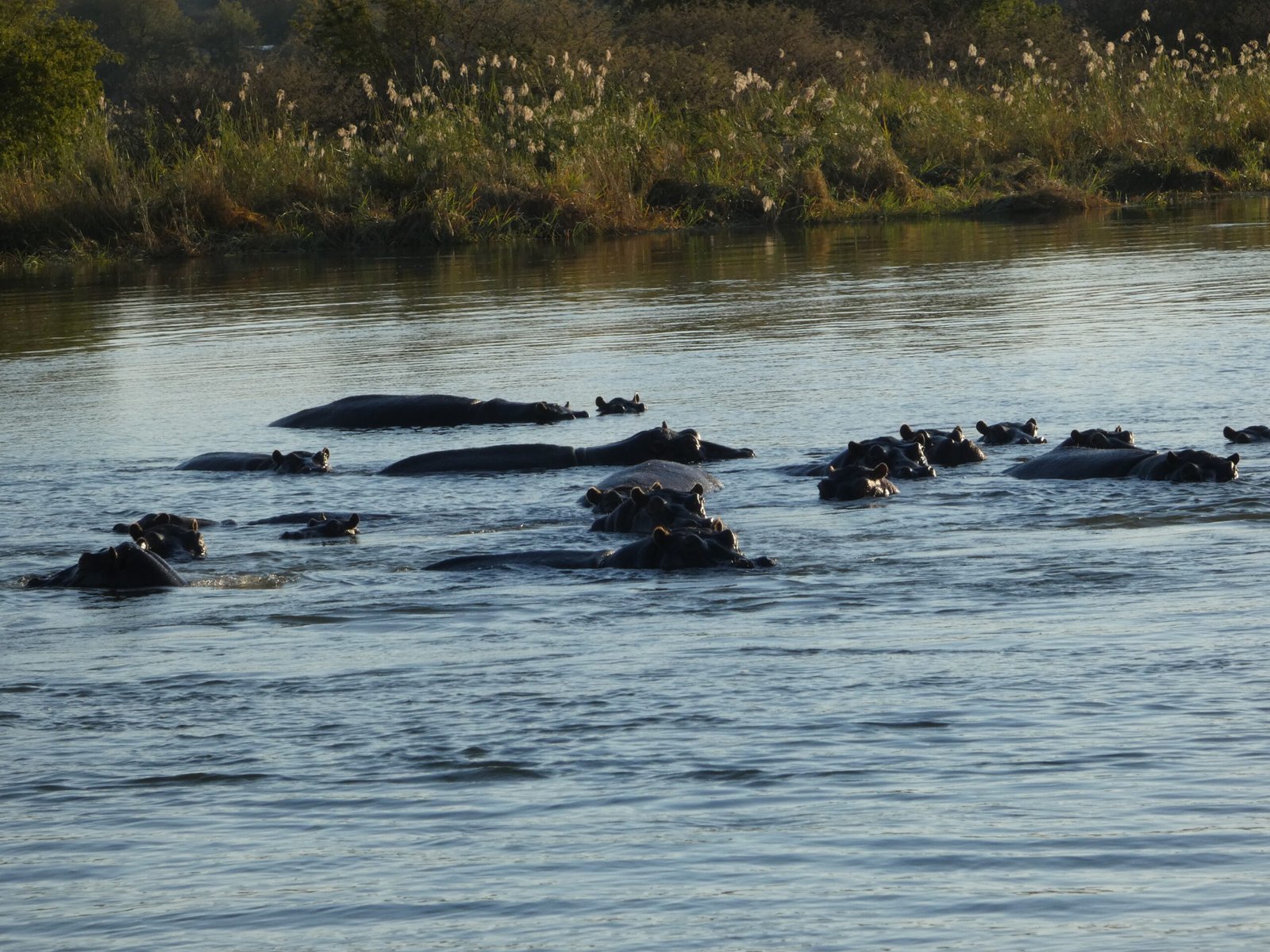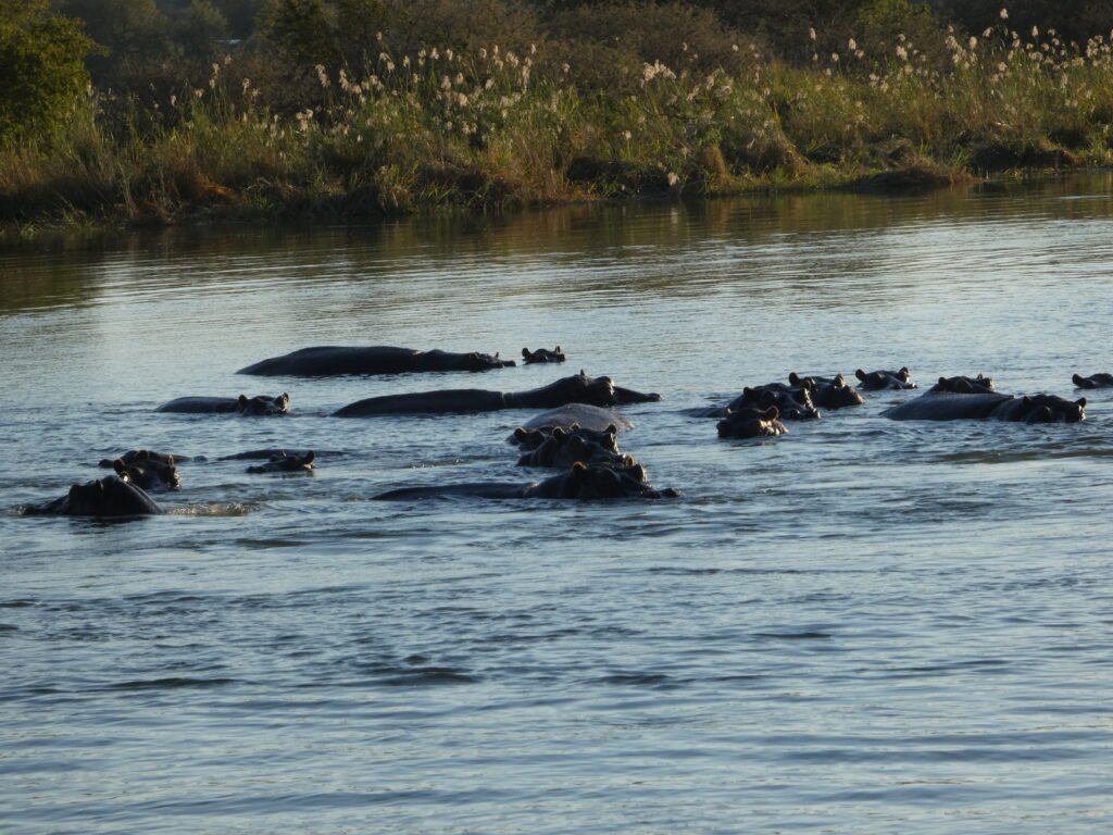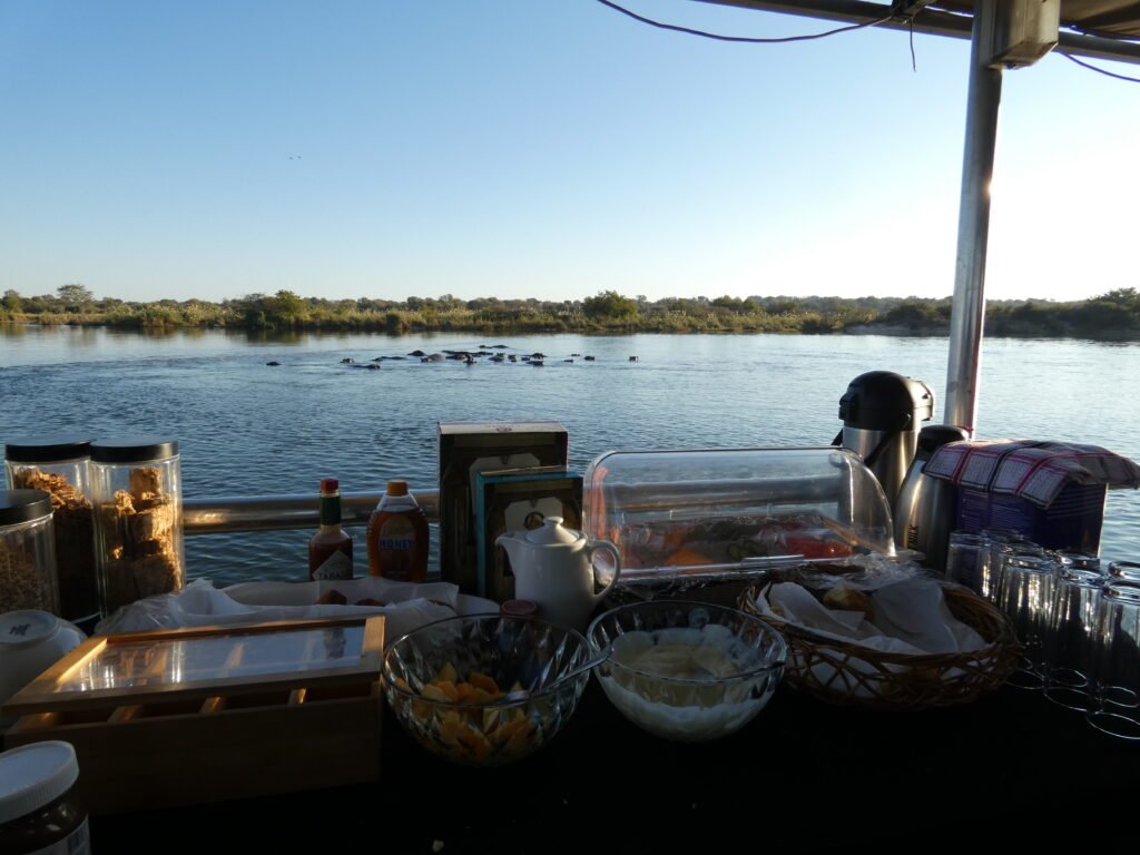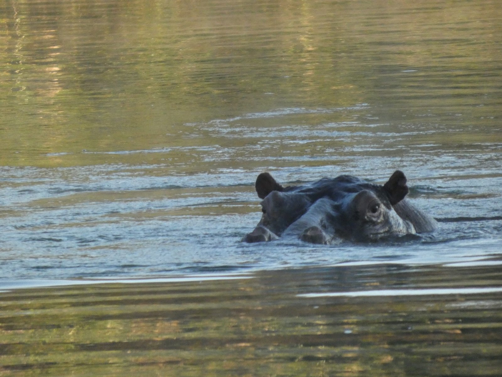 At seven in the morning, we set off on a breakfast cruise on the Okavango River. Breakfast included bacon and eggs, as well as fresh rolls and Nutella, much to Risto’s delight. We chugged slowly down the river, enjoying our breakfast and watching the hippos. There were an incredible number of them in the river. At one point, we counted 28 hippos at the same time. Risto said that if he had known how many hippos actually lived in the river, he would have been much more nervous about sleeping in a tent right by the river. In hindsight, that’s probably true. It would have been quite an experience to encounter a hippo on a nighttime trip to the bathroom!