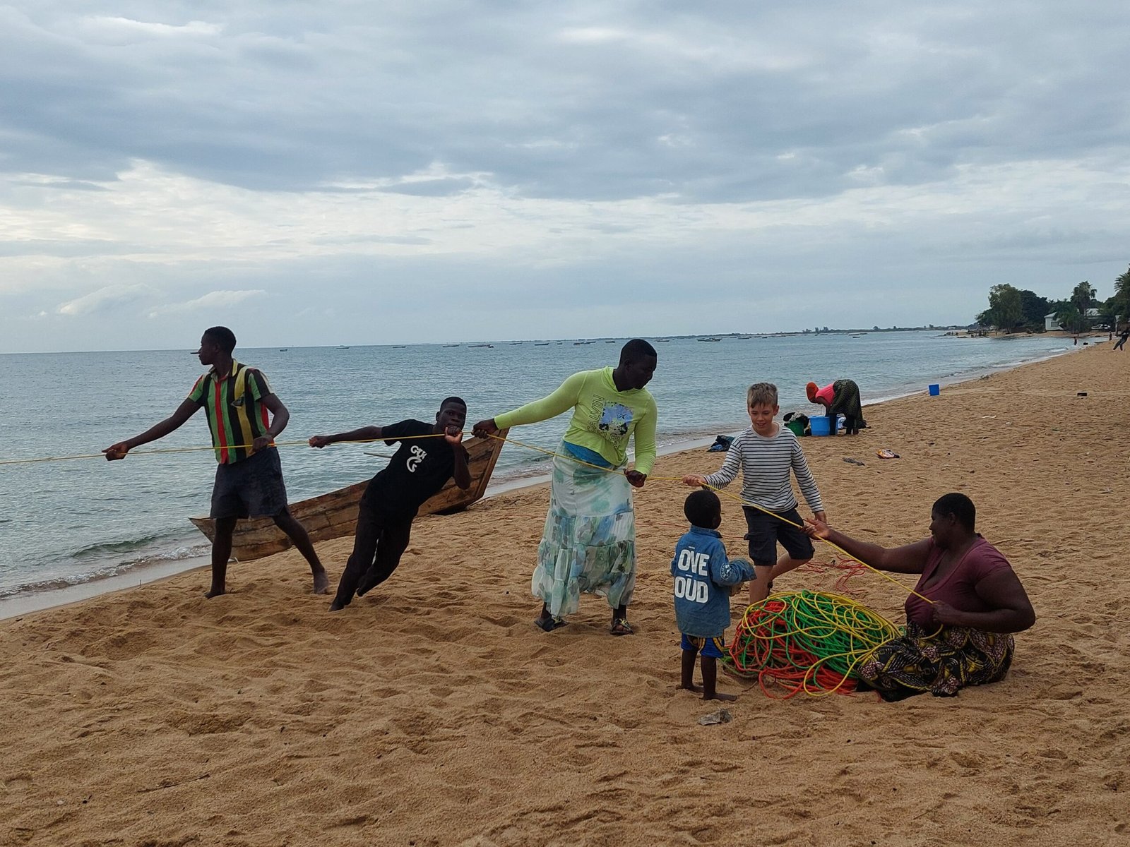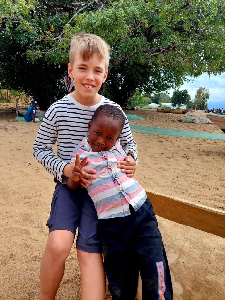 In the morning we had a little longer sleep, and at 9am we set off to explore the village of Ngala with a local guide. The tour lasted about three hours and included a visit to a local home, a kindergarten, a school, a health center and finally a visit to fishermen on the beach. Ronja and Risto gave the children they met in the village a couple of soft toys crocheted by Ronja as a present. One was given to a little girl walking along the village road and the other to a little boy who was with his mother in the maternity ward of the health center.