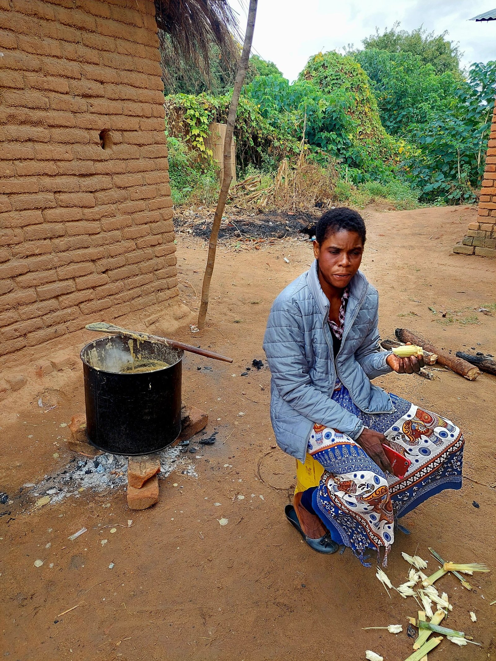 It was a very interesting visit to the village. Our guide, who himself lives in the village of Ngala (population 6,000 people), told us what life in the village is like. First we visited the home of the guide’s brother, then we went to the local kindergarten. Three years ago there was no kindergarten in the village, but now there is one from 7:30am to 3:30pm. The children are served porridge during the day and are taught basic English. This should support them in their studies when they start school at the age of six. The kindergarten was basically a single room hut. In the event of rain, they said it is a bit cramped as they all move indoors for shelter from the rain.