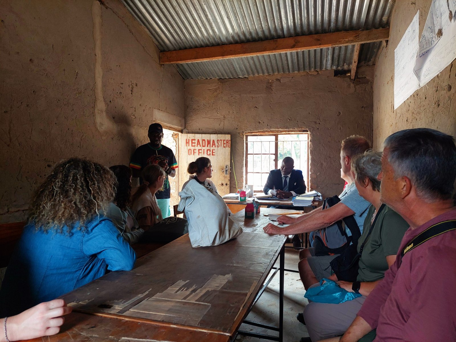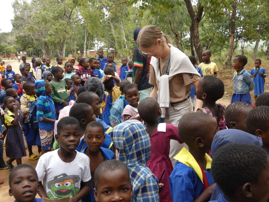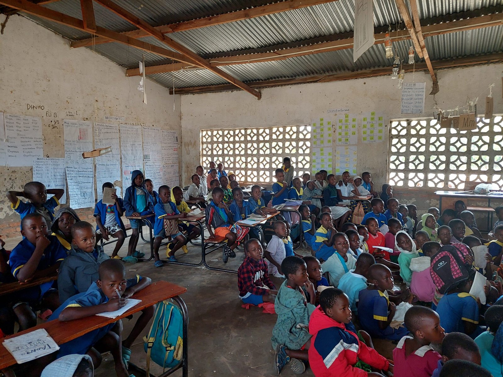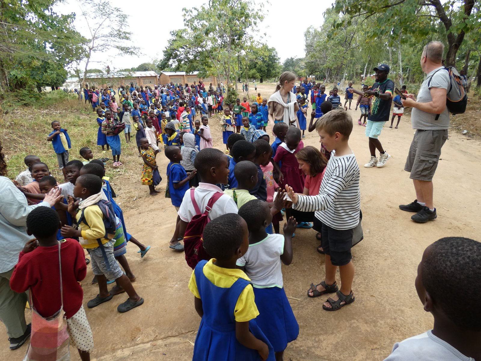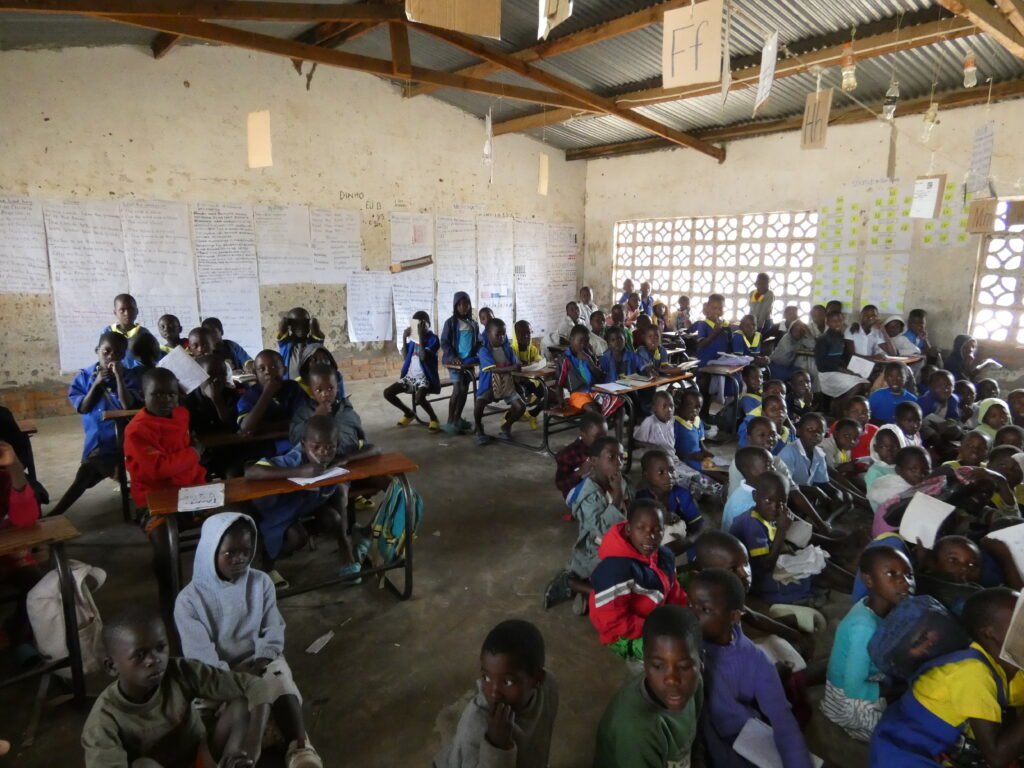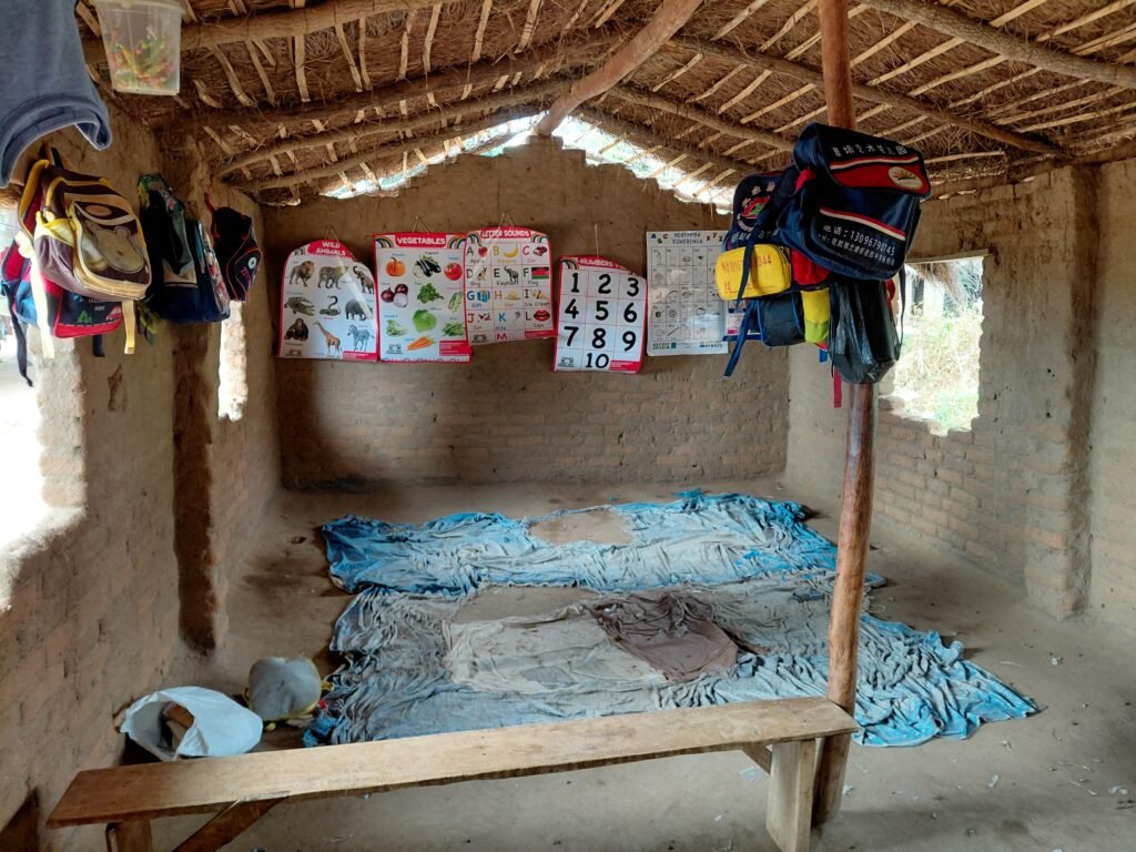 After kindergarten, we visited the school in Ngala, which has about 2000 pupils. There are only 15 teachers, so you can get an idea of what class sizes are like here. A Finnish class of 27 pupils seems quite reasonable in this scale. There weren’t even enough seats in the classroom for everyone, with many of the children sitting on the floor. All of us who went on the village visit had bought pens and notebooks from the supermarket in Zambia, which we donated to the school. Alex and Jamie had also bought a football, which the school headmaster was particularly pleased about. Both at the kindergarten and the school, the children were very enthusiastic to come and greet us. Even though there was not much of a common language, the children waved at us happily and came to give us high fives and hugs.