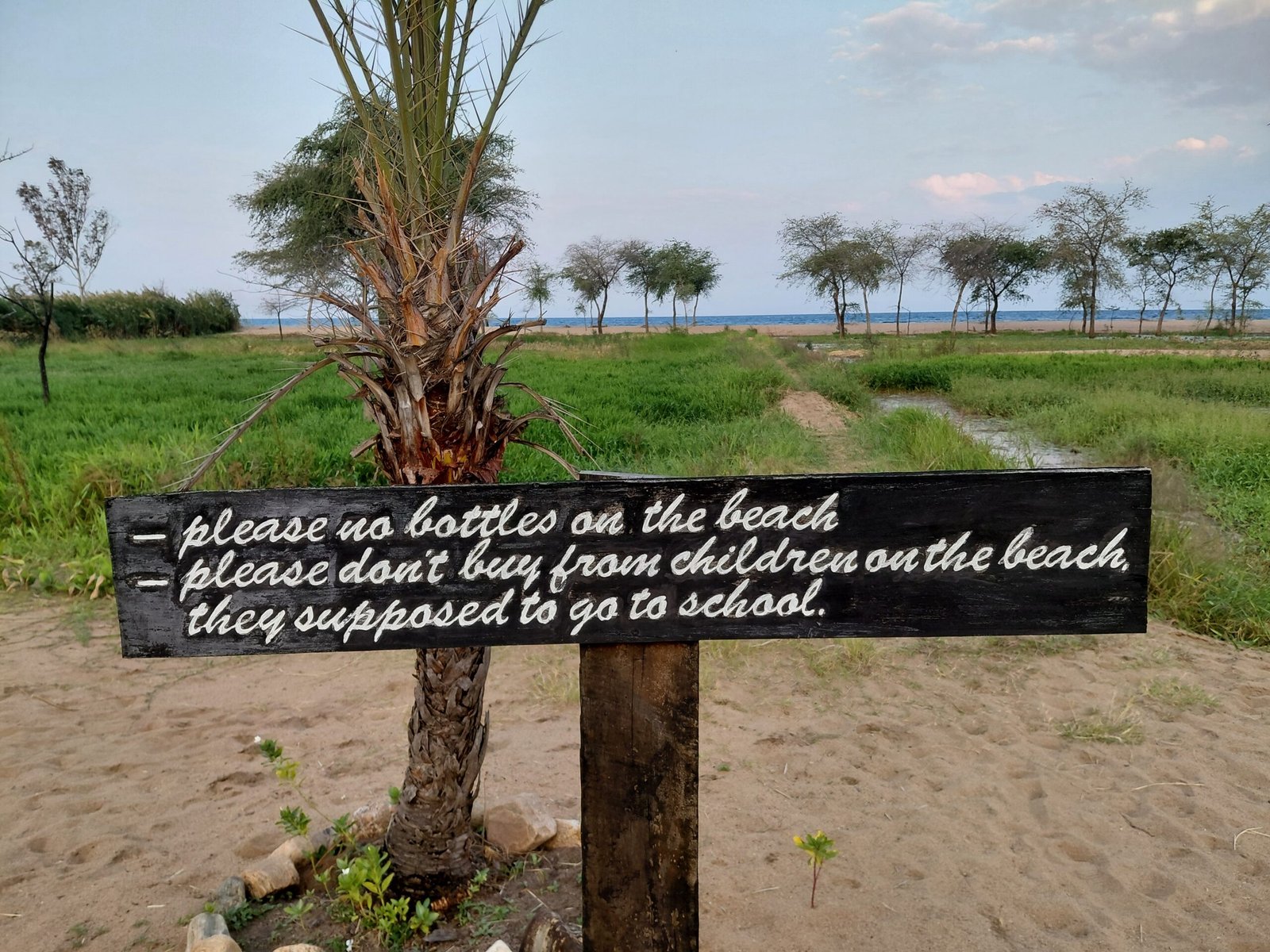 When we got into our tents to sleep, the heavy rain started and continued most of the night. We had been in our tents for maybe ten minutes when the kids announced that their tent was leaking. We had already taped up potential leak points with packing tape beforehand (no duct tape to be found), but still water poured in a trickle onto the floor of the children’s tent. We had spotted an empty canteen in the shower building earlier, so we went to set up two new dry tents there. The tents had to be erected there because there were cockroaches and mosquitos. Sleeping on mattresses alone, you could have quickly had more than one sleeping buddy in your sleeping bag. We did a quick transfer of mattresses and belongings to drier tents, and finally, at around eleven in the evening, we were able to go to bed. As the adult tent had not leaked at all by then, Marko decided to stay in the tent on the beach for the night. After all, he would be able to move to a dry tent if the adult tent started to leak like a sieve during the night. TIA – This is Africa – the children thought as they finally got into their sleeping bags.