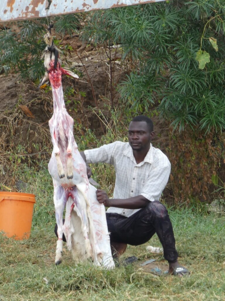 In the evening we enjoyed local delicacies for dinner, which a couple of villagers from Ngala came to cook for us. The meat stew was very tasty, but the cassava and the local mashed potatoes were pretty tasteless. Fortunately, we had plenty of meat stew broth on our plate to flavour even these side dishes.