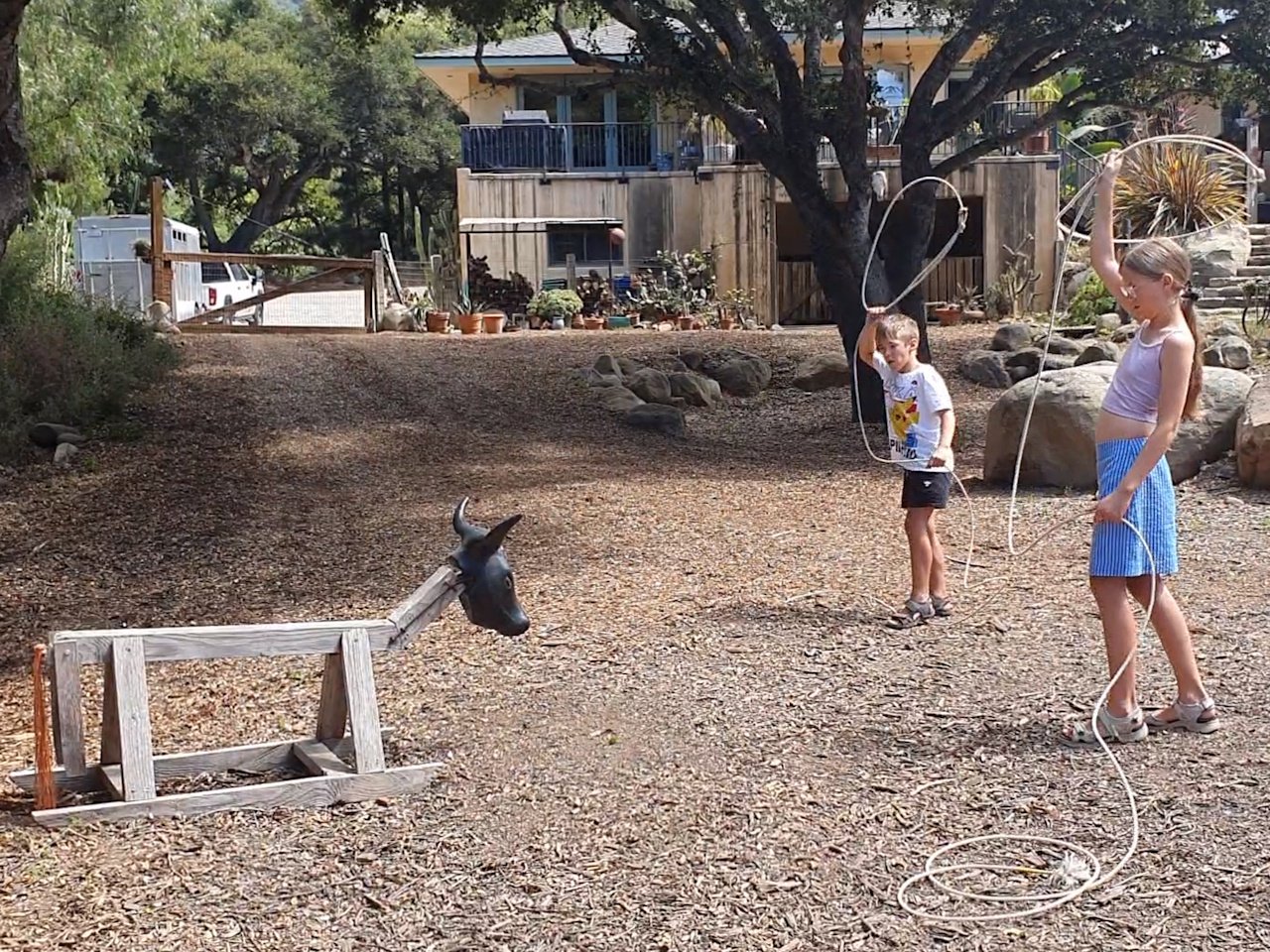 Palasimme rannikolle Santa Barbaran läheisyyteen, jossa majoituimme retrohenkisessä asuntovaunussa. Isäntäperheen koirista, kanoista, hevosista ja kissoista riitti iloa koko perheelle.